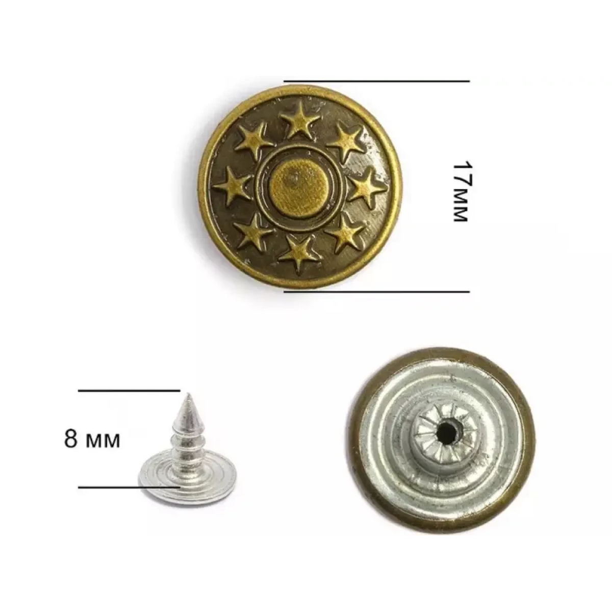 Гудзик для джинсів 17мм з малюнком Зірки (Антик) 50 шт