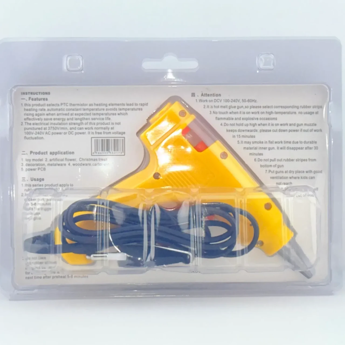 Яскравий жовтий клейкий пістолет — компактне та зручне рішення для швидкого склеювання вдома, у майстерні або під час творчих проєктів. Він ідеально підходить для ремонту, виробів і декоративних робіт, даючи змогу з“єднувати матеріали акуратно та надійно.