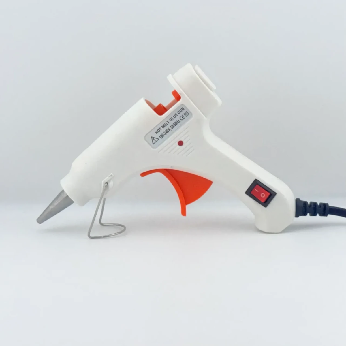 Білий пістолет для гарячого клею — універсальний помічник для дому, творчості та дрібного ремонту, що забезпечує акуратні та надійні сполуки.